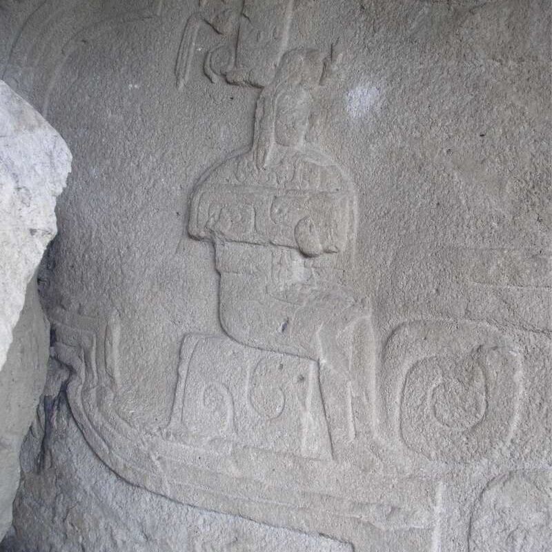 Esto conversábamos mientras sudando a mares ascendíamos el morro, deteniéndonos una y otra vez en los grabados olmecas y toltecas (desde el 1.500 AC al 500 DC) y mirando con avidez las por ahora (para nosotros) inaccesibles cuevas que casi en la cumbre, con pictografías en su interior, sólo pueden accederse con equipo de escalada que no habíamos llevado (grrrrr…). Los Antiguos no necesitaban eso. De alguna forma llegaban, se instalaban y aprovechaban el lugar. Ah, por cierto, aquí otra vez rememoramos la voz del sacerdote. Perdón, del empleado del INAH: “Usaban esas cuevas como depósitos de agua para cuando, en épocas de lluvia la maleza crecía y los “animales de uña” como el jaguar predaban a sus anchas, pudieran refugiarse fuera de su alcance y sobrevivir hasta que el regreso de la estación seca alejaba a los depredadores y disminuía el peligro, para regresar al valle”.