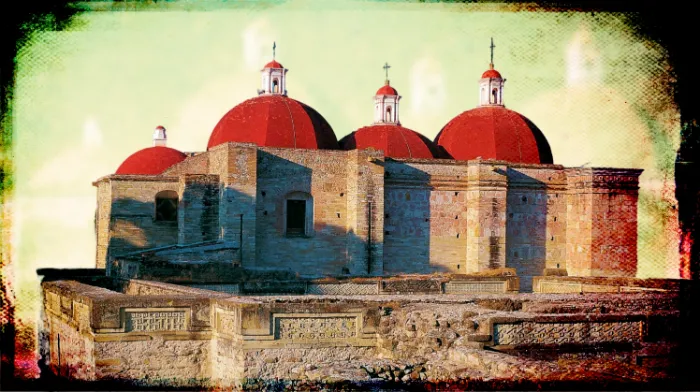 Hay dos características arquitectónicas que me cautivaron, para bien o para mal, en Mitla. Miento: son tres en realidad. Para mal: ya es por demás sabida la obsesión de los conquistadores (nunca “colonizadores”) en construir sus iglesias en sitios de interés sagrado para los pueblos autóctonos. Aún más; empleando el propio material de obra de esos sitios. Pero en pocos lugares como Mitla tal sacrilegio adquiere visos de repugnancia, porque en pocos lugares como Mitla los conquistadores “cuidaron” que fuera evidente la imposición de su credo, al levantar su iglesia no sólo en el Patio IV, la zona más alta del centro ceremonial, sino manteniendo intacta la construción a su alrededor, lo que, en principio quizás interpretable ingenuamente como una señal de “respeto” (arquitectónico) se transforma en un a forma subliminal de opresión porque el contraste hace más evidente la violencia psicológica del autoritarismo ecleciástico.